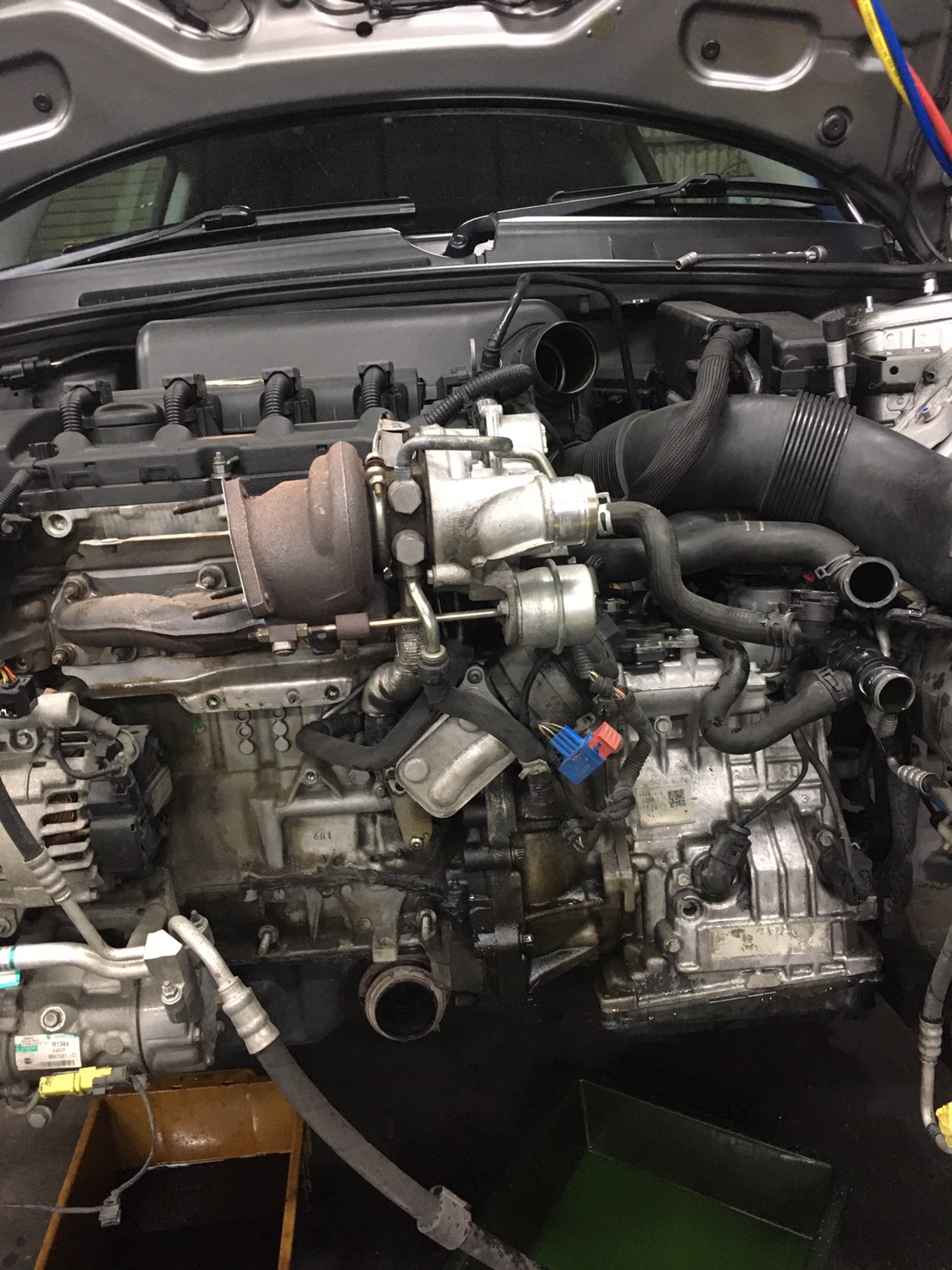 よく漏れるオイルフィルターブロックとオイルクーラーP/Kの交換修理です